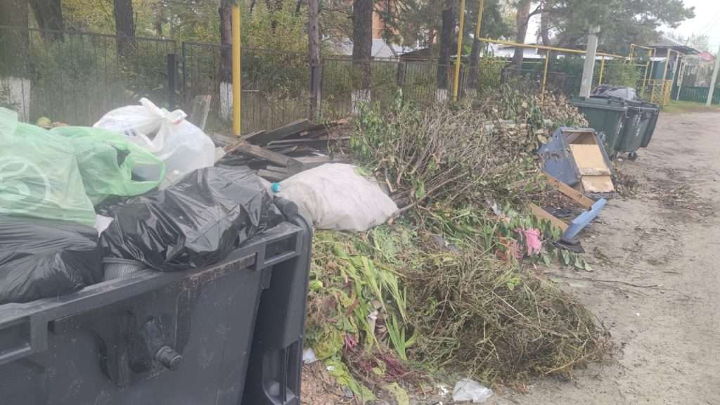 Во время поездки мы обнаружили исчезновение мусорных контейнеров возле «Пятерочки» на ул. Дзержинского, 1 близ сквера имени Н.И. Кузнецова. За комментарием обращаемся к начальнику Управления городского хозяйства Рыжкову В.А. Владимир Алексеевич поясняет, что баки были установлены для сбора мусора с общественных мест, в частности из сквера. Однако сюда тащили пакеты со всей округи: магазины, частный сектор, привозили на машинах — по пути. А по договору услугу оплачивало Управление. Решено было их убрать, свой мусор собирать в мешки и вывозить на тракторе. Мэр согласился, что действительно контейнерные площадки переполнены, так бывает в осеннее время, но «Спецавтобаза» обещает все вывезти. В понедельник, сообщил он, пришел большой мусоровоз, очистили площадки в Троицком, а сегодня (разговор был во вторник, 16 сентября) начнут работать в городе. А что касается свалки в Троицком, так она закрыта еще два года назад, там проводится рекультивация, а «Спецавтобазе» выделен другой участок.