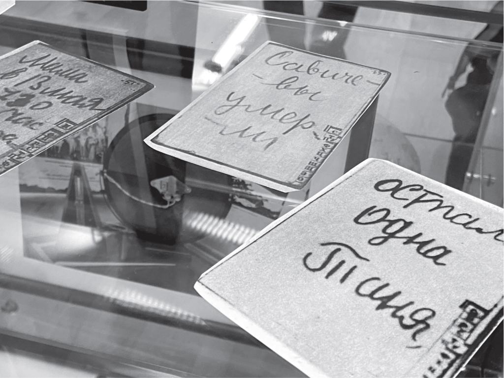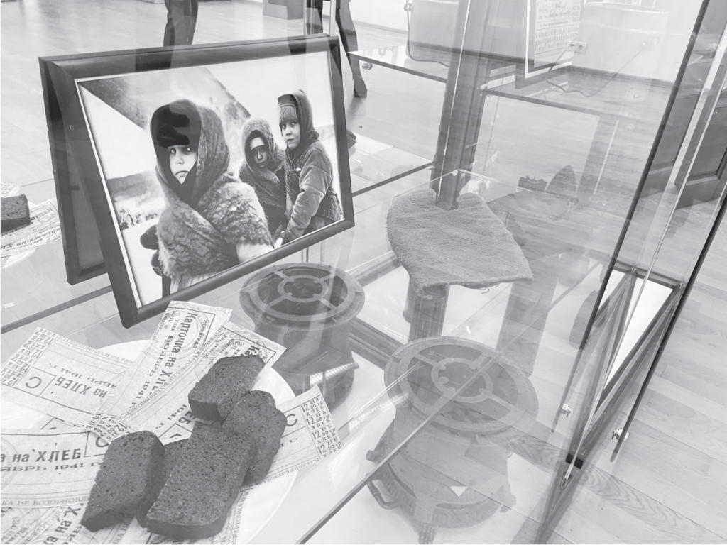 Об одной из таких в цикле «Сквозь года звучит Победа!»напоминает музей разведчика Н.И. Кузнецова на разместившейся выставке «900 дней мужества». Как нам рассказала его директор Исламшина Н.Г., запланировано 12 выставок-экспозиций, посвященных крупным событиям Великой Отечественной войны. Первая — «900 дней мужества»о блокаде Ленинграда открыта с начала января и завершает свою работу 31-го.На стенах зала представлены фотографии, рассказывающие о тех трагических событиях, которые пережили ленинградцы. В витринах экспозиций – предметы и вещи военных лет: хлебные карточки, сухие кусочки хлеба, керосиновые лампы, примус, личные вещи, кожаные ремни, из которых блокадники пытались варить суп, и пр.Фотографии страничек дневника Тани Савичевой… Гильзы снарядов, падающих на город…Кукла-макет малыша, сидящего на санках, закутанного в бабушкину шаль… Мы далеко были от Ленинграда, и у нас, к сожалению, нет предметов, напоминающих о тех страшных днях и ночах, пережитых его жителями. Зато Талицкий детский дом, действующий в стенах дома Поклевских, принял маленьких ленинградцев на время войны. Некоторые из них, потерявшие родных, останутся в нашем городе навсегда, обретя здесь родной дом, вторую родину.