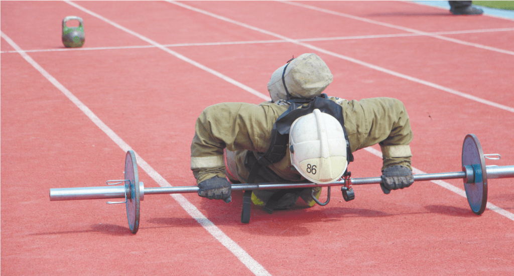 Если рассмотреть по этапам пожарный Кроссфит, тренируются функциональная выносливость, а специально разработанные упражнения имитируют ситуации, которые возникают при тушении огня. Конечно, пожарным не приходится стучать кувалдой по покрышкам грузового автомобиля или бегать стометровку с шестнадцатикилограммовыми гирями в руках, как на кроссфите, но, тем не менее, во время борьбы со стихией пожарным-спасателям часто приходится применять силу, скорость, выносливость. Чтобы «вытянуть» все упражнения и прийти к лучшему результату, нужно быть достаточно развитым физически, потому что работать приходится на пределе человеческих возможностей.Множество тяжелых упражнений выполняется на все группы мышц, без перерыва. Программу кроссфита разрабатывают сами огнеборцы и проверяют свои возможности тоже сами…