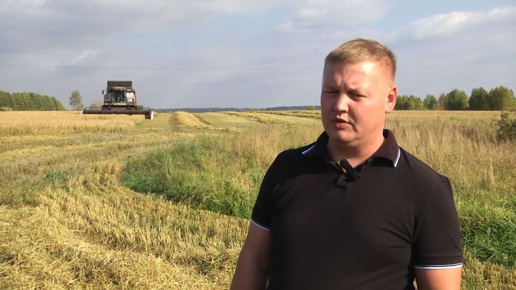 Дорога привела нас на поля СПК «Труд», как отметил сопровождающий, одно из ведущих предприятий ТМО. Мало того, что здесь на достаточно высоком уровне проводится уборочная кампания, в этом хозяйстве и достаточно большой перечень выращиваемых культур. И обо всем этом подробно нам рассказал руководитель СПК Калугин А.П. Он пояснил, что уборка идет в зависимости от погоды. К примеру, вчера и сегодня наблюдается повышенная влажность. В поле работает 6 комбайнов, убирается ячмень, он частично полегший после дождей, поэтому работа продвигается медленно. Пошел, рассказывает Алексей Павлович, так называемый пророст: колос лег и пророс. При повышенной влажности всегда бывают потери, они неизбежны. Если постоит сухая погода, их будет меньше. Сырое зерно приходится сушить. Имеются два сушильных комплекса, где производится сушка до 78 тонн зерна в час. В целом урожайность не хуже прошлогодней, но, как говорится, в амбаре посчитаем. Что касается большого количества культур, то, по его словам, выращиваются ячмень, пшеница, рапс, лен, чечевица, горох, соя, кукуруза. Причем в этом году впервые будут собирать кукурузу на зерно, а сою — второй год. В основном все идет на собственные нужды, в том числе и кукуруза на корм животным. Запасов с прошлого года, отмечает он, практически нет, все реализовали. Но резервный фонд всегда держат. Цен на пшеницу пока еще нет, как и на другие культуры. К примеру, рапс на уровне прошлого года, лен — минус 33% из-за введения 10-процентной пошлины. Пшеница сейчас стоит порядка 9 рублей с НДС, себестоимость ее не может быть ниже 10 рублей. Зерно уже много лет, с горечью признается Алексей Павлович, нерентабельно. Многие отказываются от него в пользу масленичных культур, чтобы хоть как-то выжить. Такая же ситуация с рапсом и льном. Мы гонимся не за большими урожаями, а за экономически выгодными. Можно вырастить и 100 центнеров с гектара, но себестоимость будет низкой!